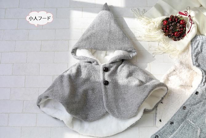 寒くなってきたので、マントの型紙を購入して、作りました。中に使うボアは結構な厚みがあったので、縫うのも大変でしたが、仕様書がとてもわかりやすくて、最後のどんでん返しで表に返すと、とても可愛い耳付きのクマちゃんマントができました。ボタンホールを作って、ボタンにしようと思いましたが、家庭用ミシンなので、厚みがあり過ぎて、ボタンホールが出来なかったので、木製の素敵なスナップボタンにしました。簡単に出来て、本当に可愛いマントが出来ます。