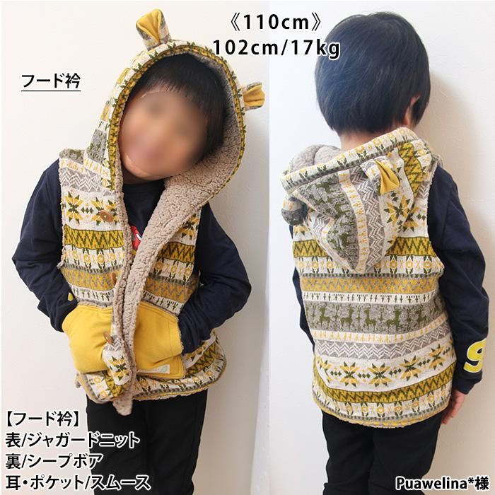 写真付きのレシピのおかげで細かい部分もわかりやすく、またワンポイントも載っているので、家庭用ミシンでもしっかり可愛くしあげることができました。 裏布をボアで今回は作成させていただきましたが、他の生地を使って作成してもまた違った雰囲気が出て可愛いと思いました。子供達1人でも脱ぎ着しやすく、 可愛いシルエットに大満足です♪