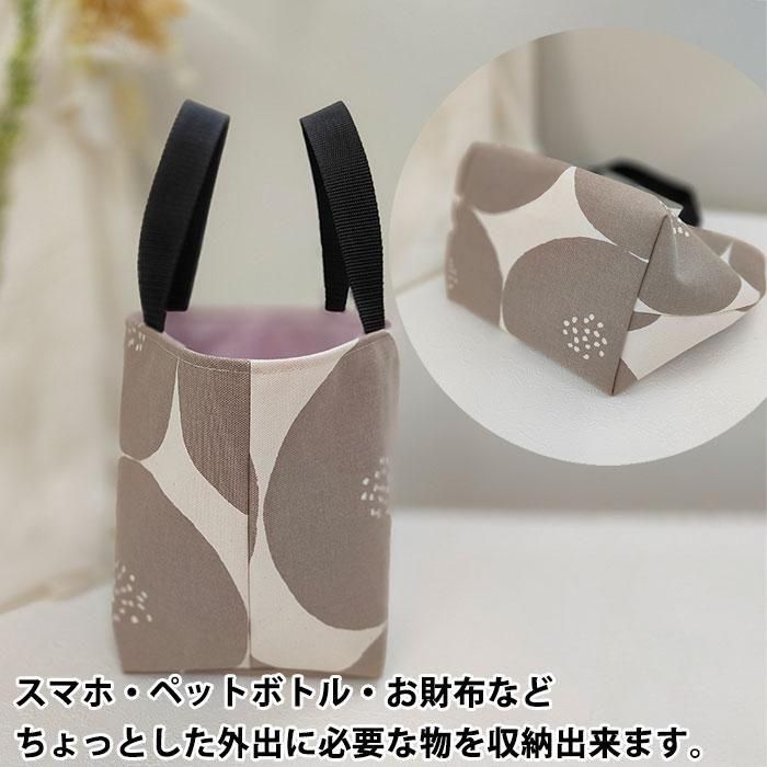 スマホ・ペットボトル・お財布などちょっとした外出に必要な物を収納出来ます。