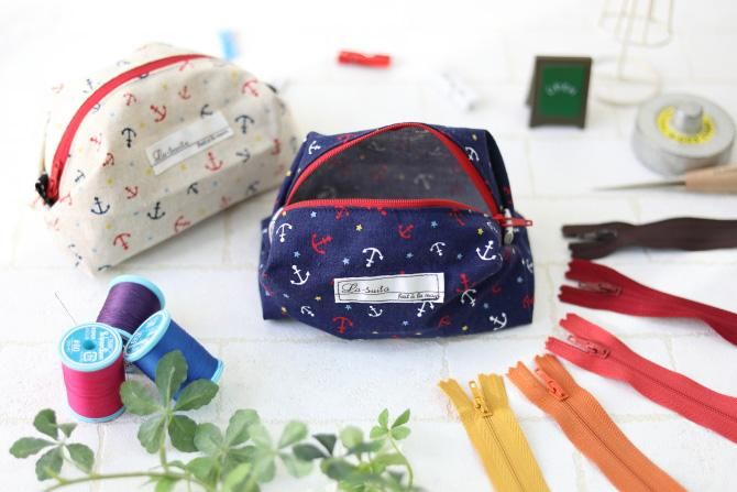 ●簡単きれいなポーチ。たくさん眠っているであろう布山から、是非作ってください。