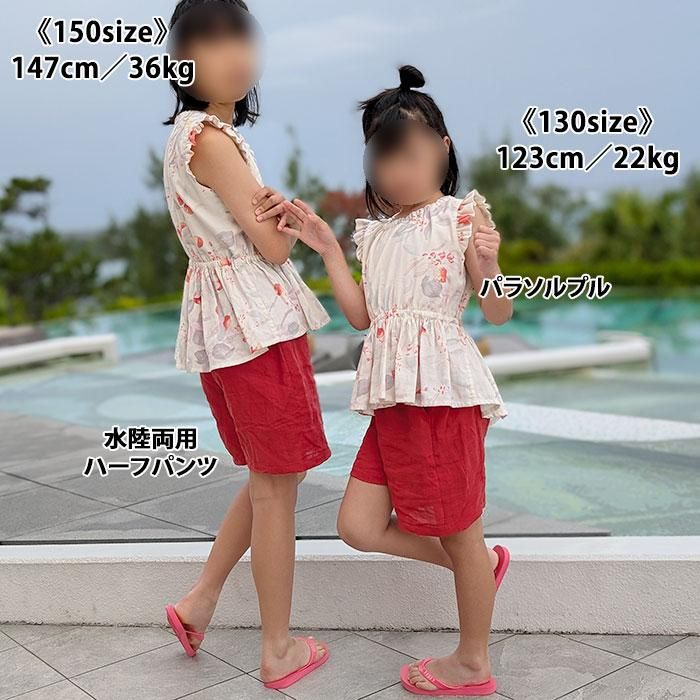 コットン生地を使えばシンプルで快適なパンツ、撥水生地を使えば水遊びに。