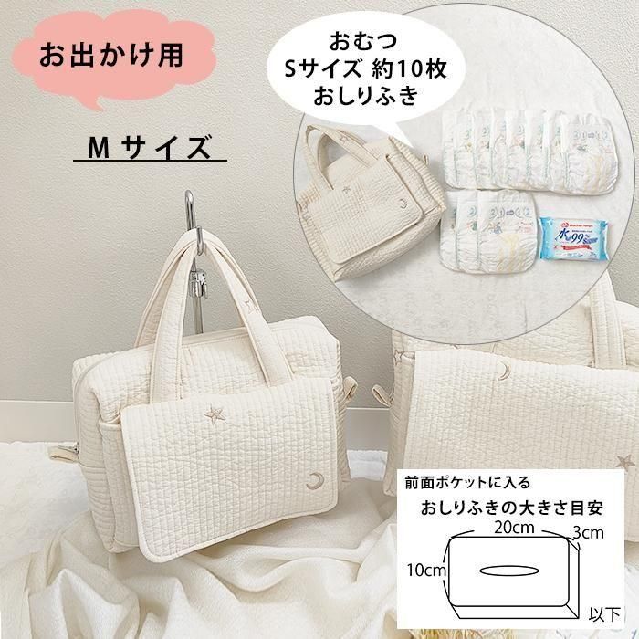 ・ 表側に「おしりふき用ポケット」、内側に1つポケットが付きます。それぞれ2つ(両面)につけることも可能です