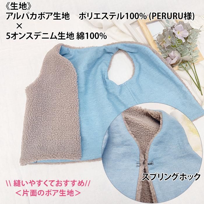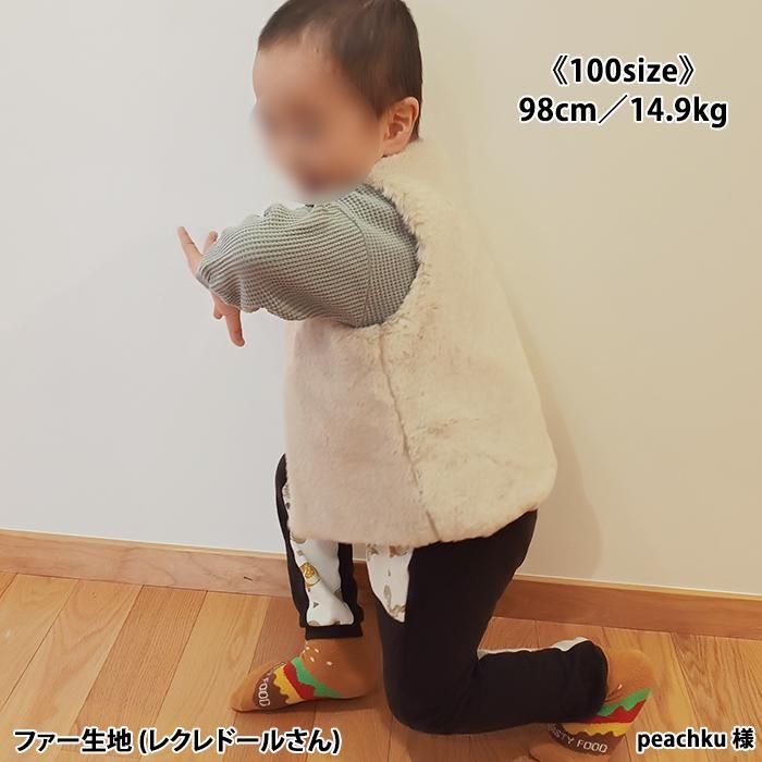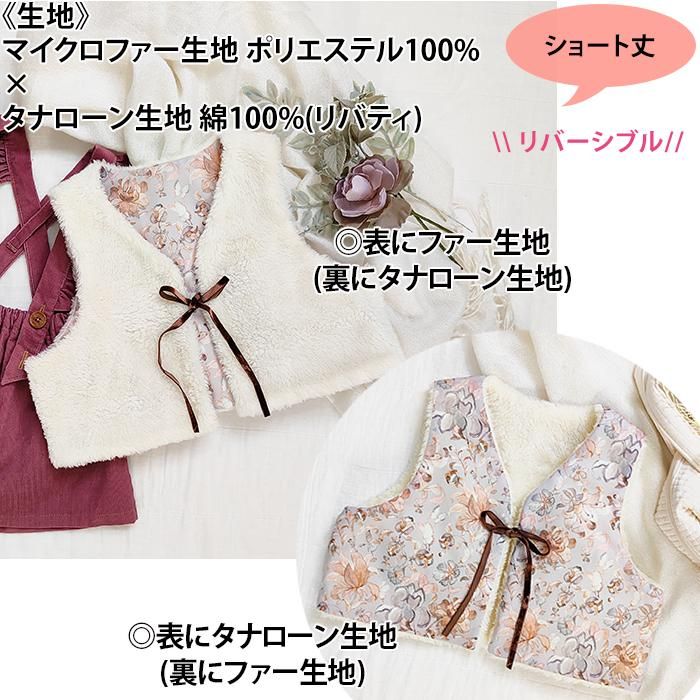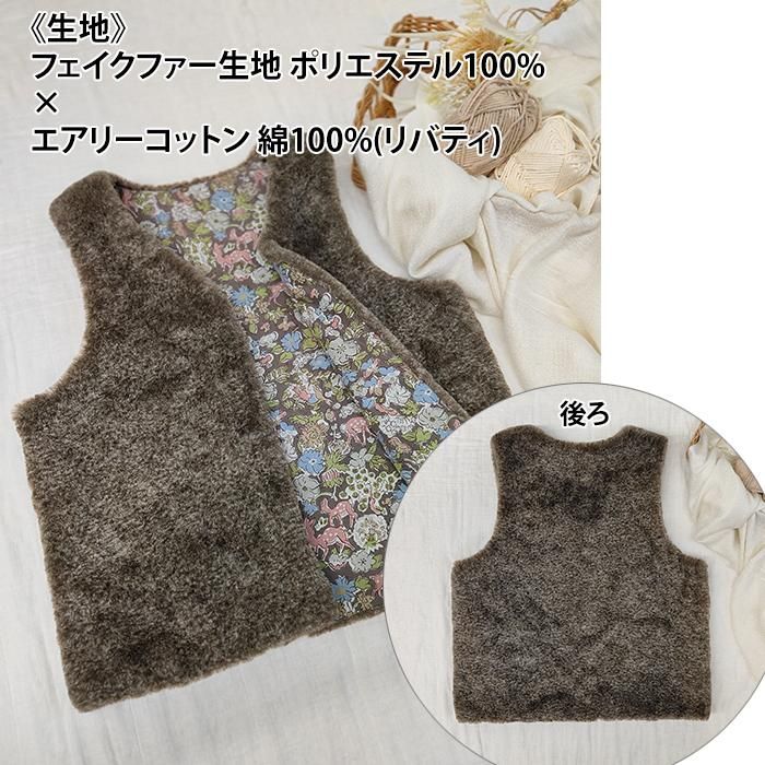 そんな気持ちから、「小さい子どもにも着せたい!」と思い、フェイクファーでベストを作ってみました。