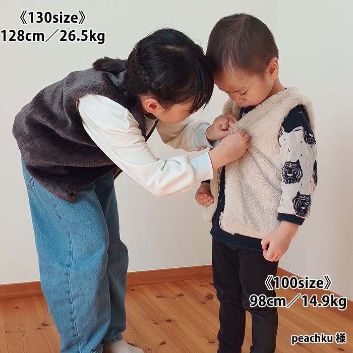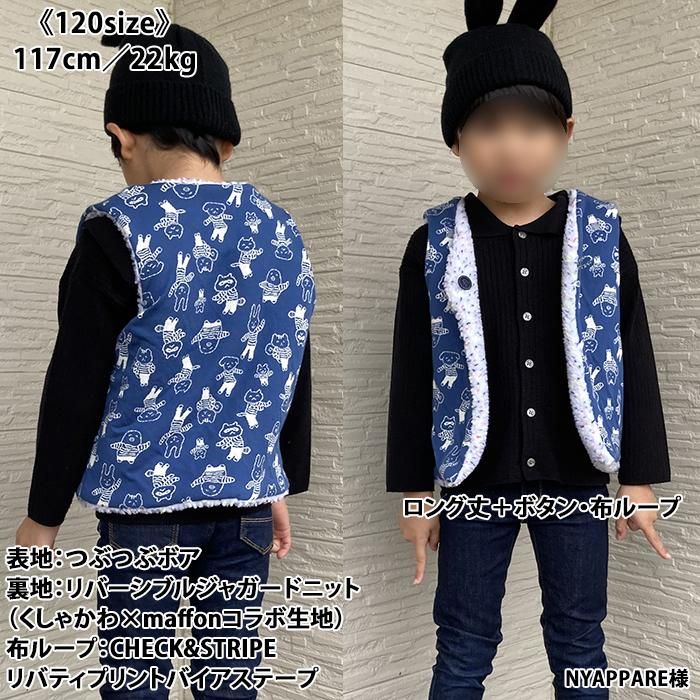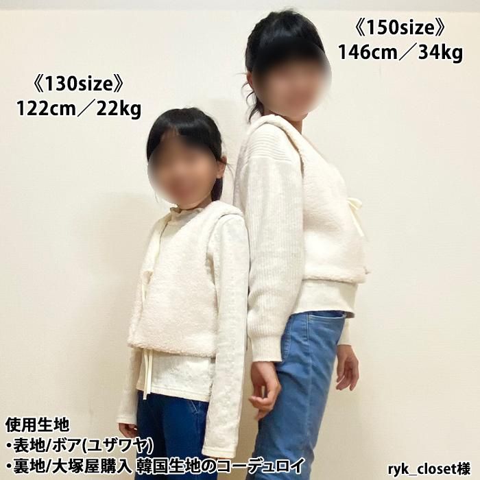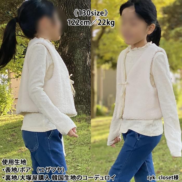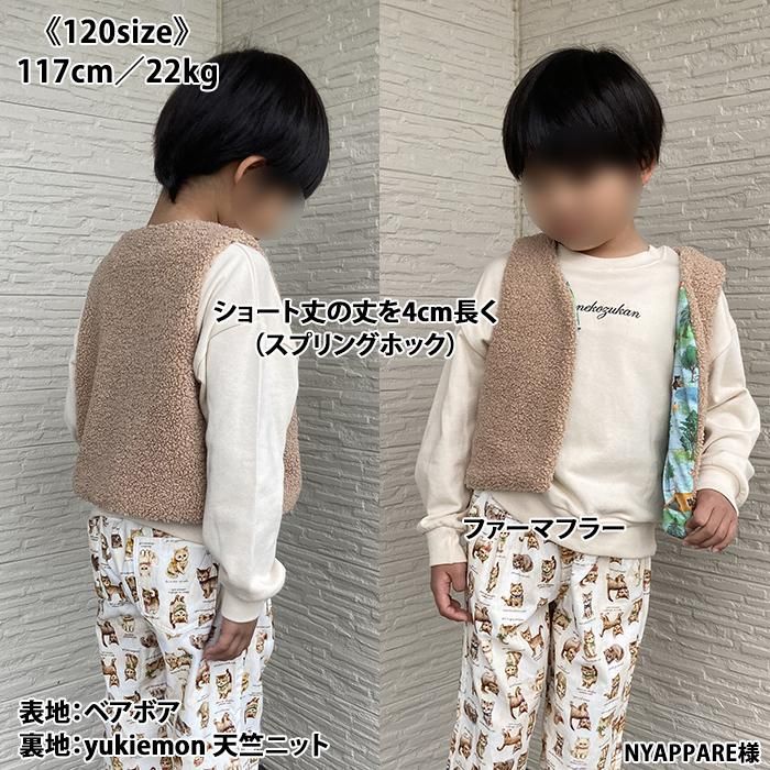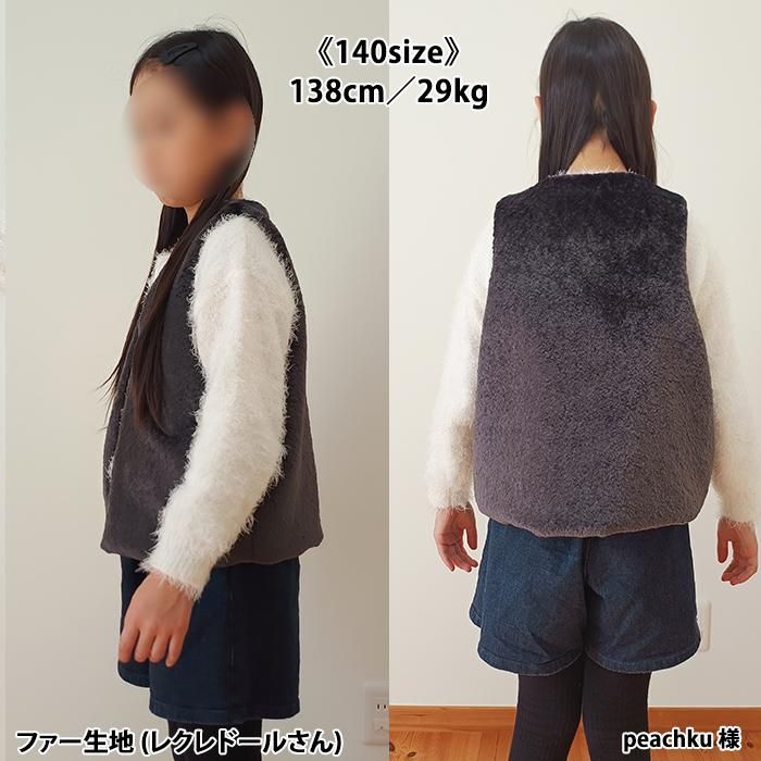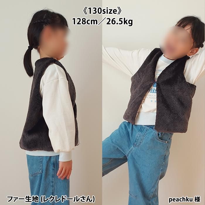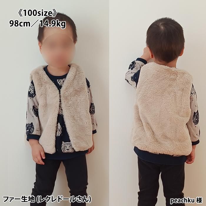 パーツが少なく家庭用ミシンのみで縫えるし、縫い目が全て隠れるので、簡単に綺麗で可愛いジレが出来ました。 縫い目からファーを出す作業が癖になりそうです(*^^*) 息子たちも「温かそう!早く着たい!」と言ってくれ、喜んで撮影に臨んでくれました☆ ボアやフリースなどの生地でも作ってみたいです♪