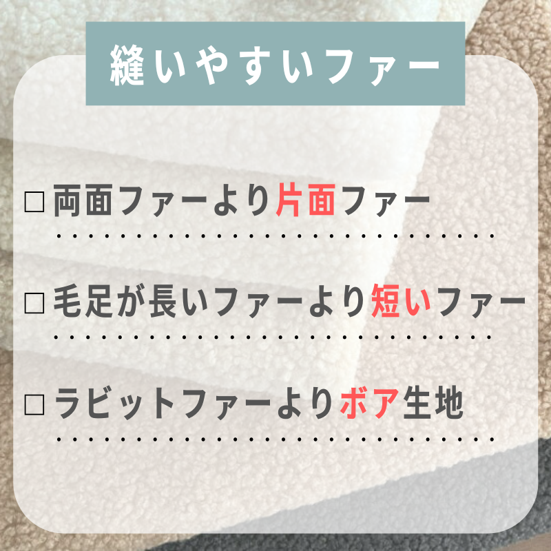 なかでも「ボア生地の片面ファー」は縫いやすくおすすめです。