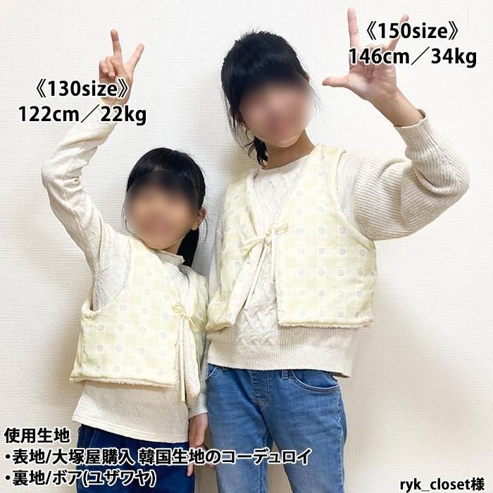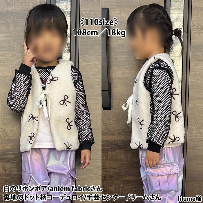 パーツが少なく家庭用ミシンのみで縫えるし、縫い目が全て隠れるので、簡単に綺麗で可愛いジレが出来ました。 縫い目からファーを出す作業が癖になりそうです(*^^*) 息子たちも「温かそう!早く着たい!」と言ってくれ、喜んで撮影に臨んでくれました☆ ボアやフリースなどの生地でも作ってみたいです♪