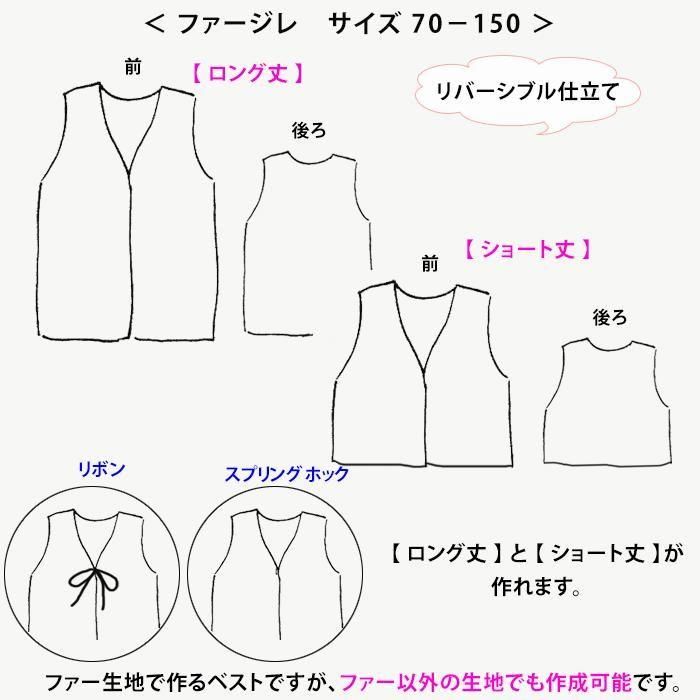 そんな気持ちから、「小さい子どもにも着せたい!」と思い、フェイクファーでベストを作ってみました。