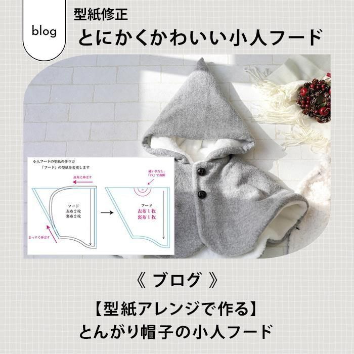 フードの型紙を変更して作成。簡単に作れます!かわいい!詳しくはブログにご紹介