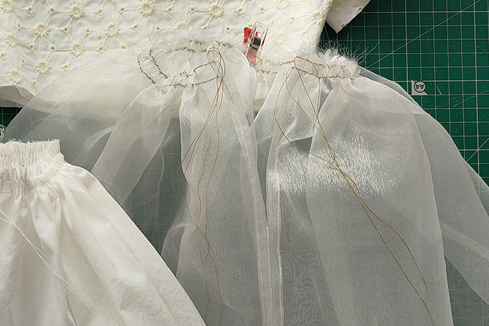 それぞれ、ギャザーを寄せます(詳しい作り方レシピに記載)
