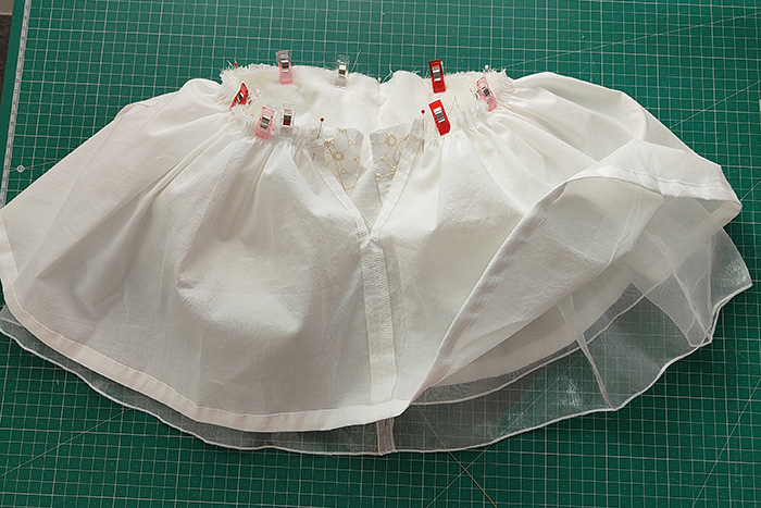 3枚重ねて縫います(身頃・上スカート・土台スカート)