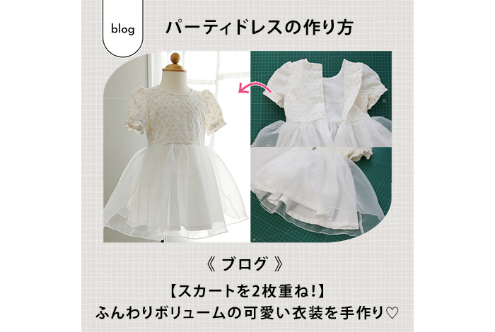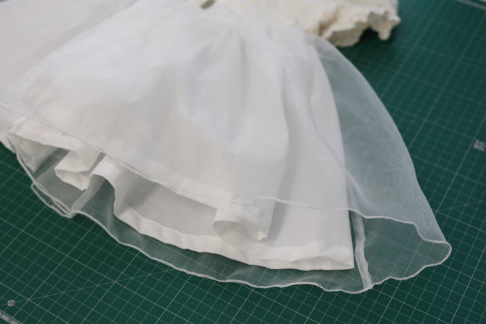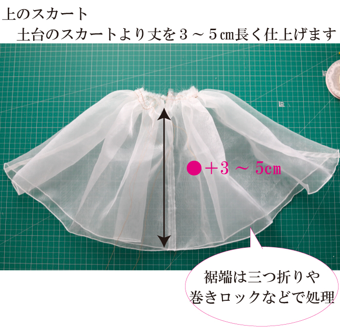 2枚重ね。重ねるスカート生地は、シフォンやオーガンジー・チュール生地などがおすすめです。
