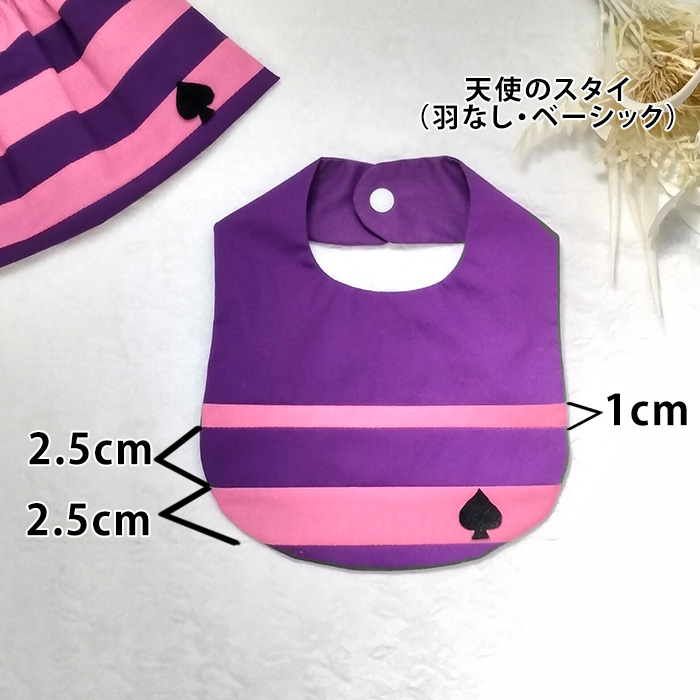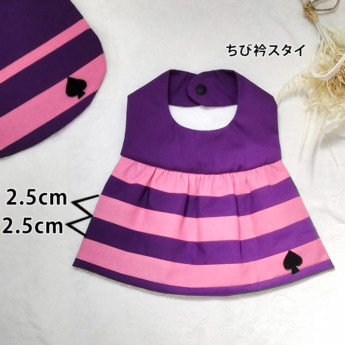チェシャ猫のピンクと紫のストライプ柄に生地を接ぎ合わせました。