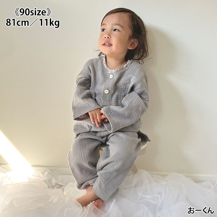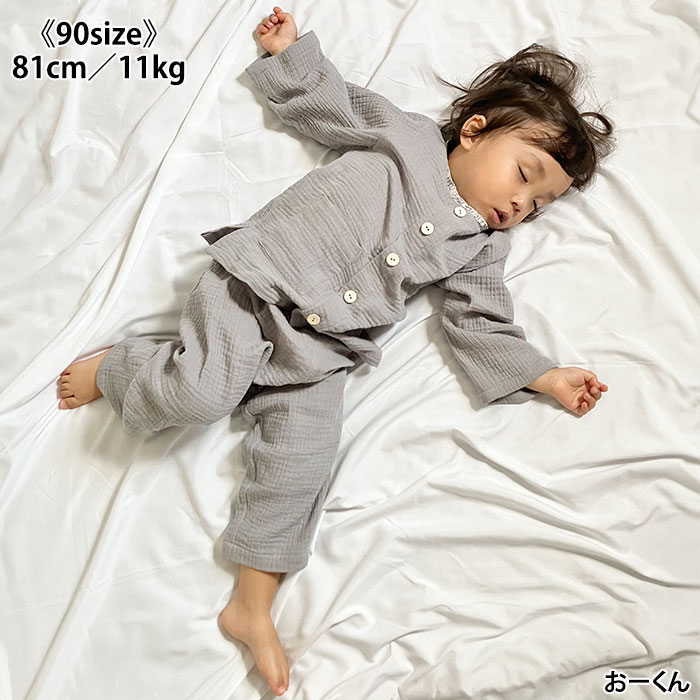 ズボンは寝冷え防止に股上が深くなっていますが、衿まわりはお子さまに合わせて調節していただければと思います。