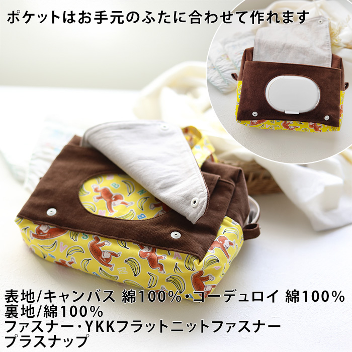 おしりふき内蔵ポケットは、お手持ちのふたに合わせて作れます♪